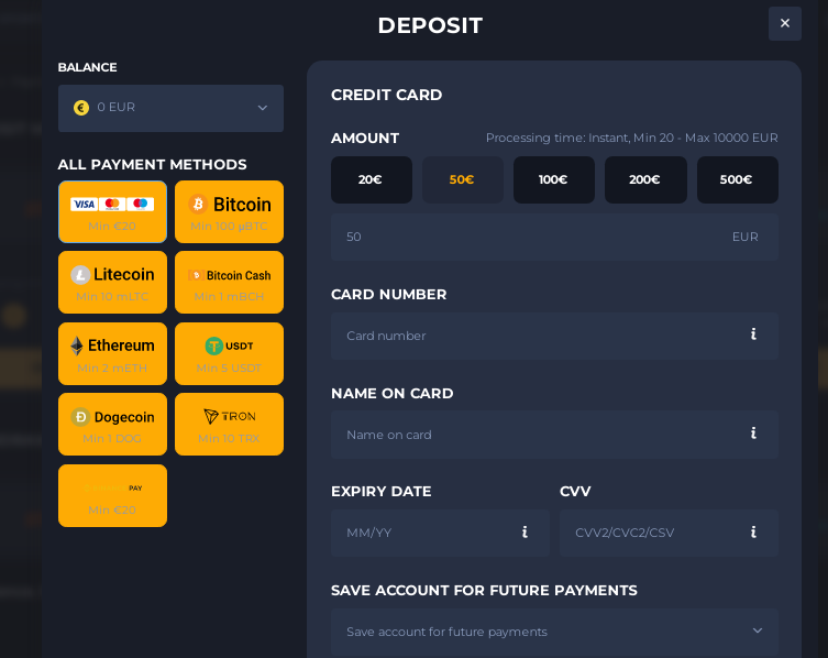 7Bit Casino accepts a wide range of cryptocurrencies including Bitcoin, Ethereum, Litecoin, Bitcoin Cash, Dogecoin, and Tether. Withdrawals are generally fast, and the casino offers instant deposits in most supported coins. Its interface allows easy switching between fiat and crypto accounts.