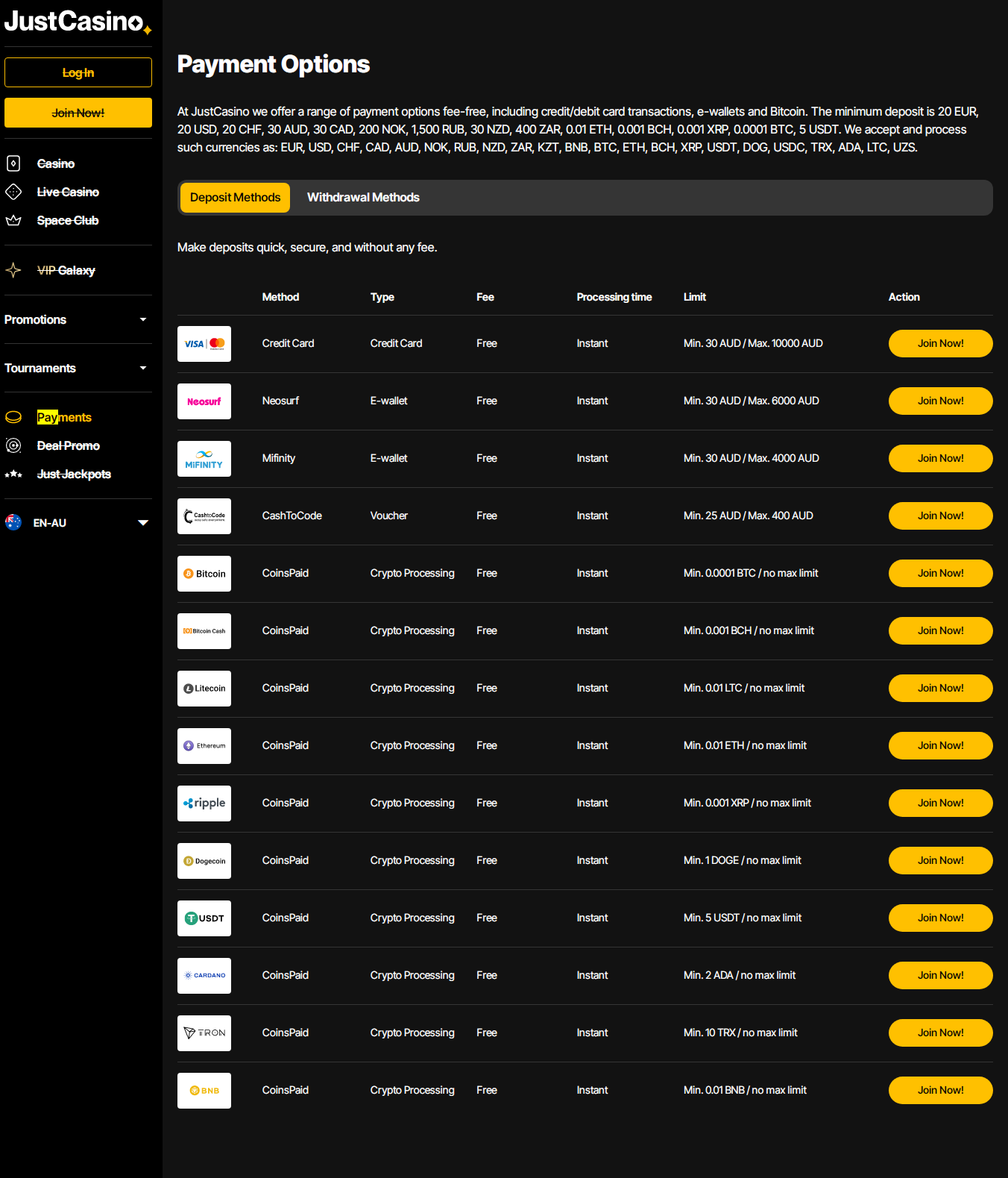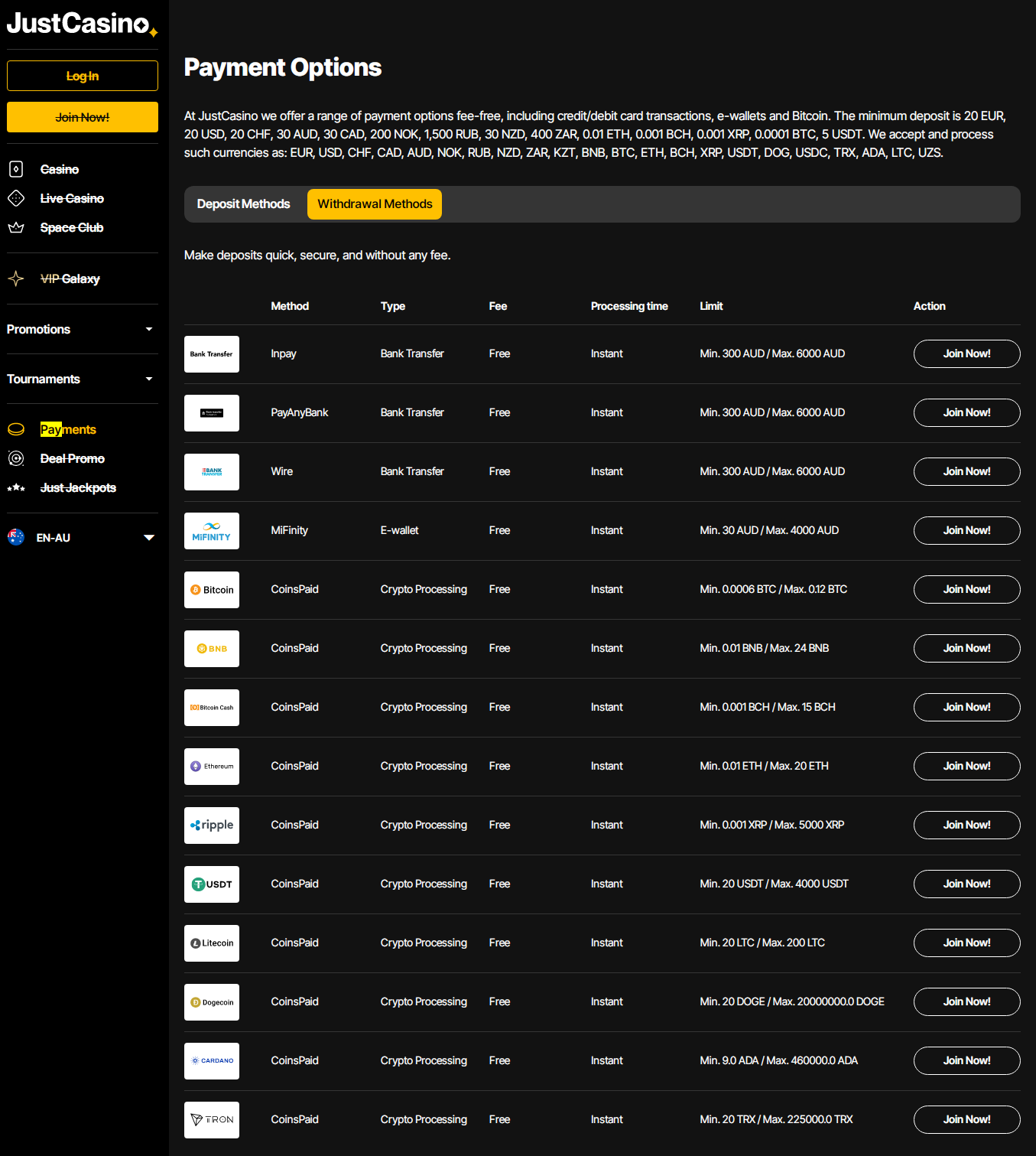 Just Casino demonstrates superior cryptocurrency support and processing efficiency compared to ZotaBet Casino. The comprehensive fee-free structure and enhanced VIP program provide Australian players with greater value and flexibility.
