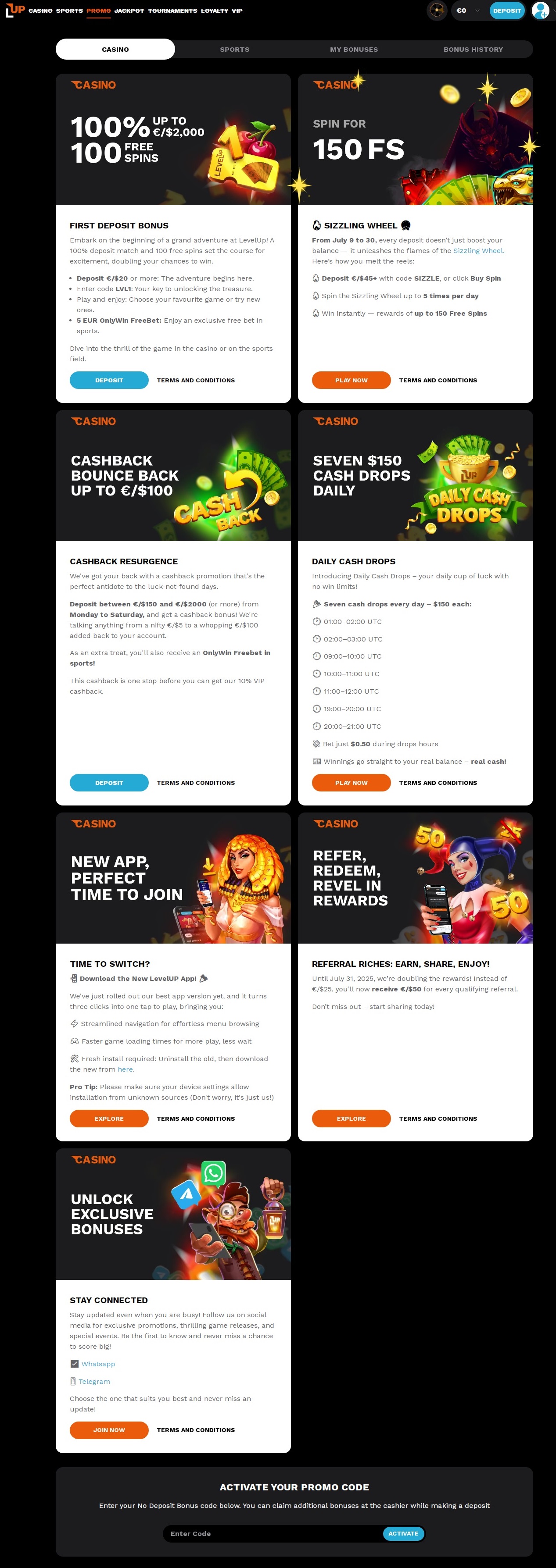 The Level Up Casino bonus codes system provides regular players with access to exclusive promotions throughout the year. These codes unlock special offers including: