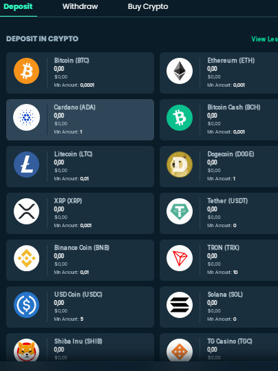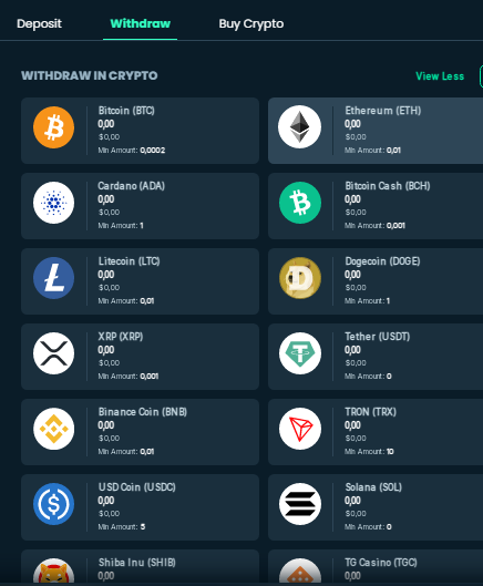 All deposits and withdrawals are processed without fees, which makes Megadice a preferred choice for players looking for anonymous crypto gambling and instant crypto payouts .