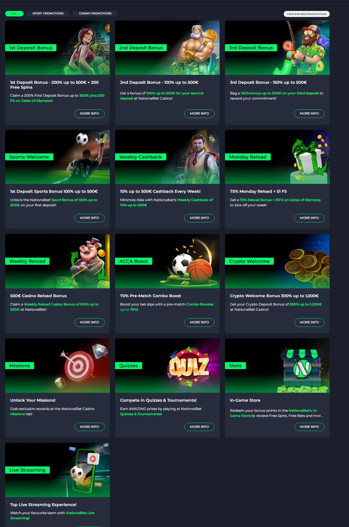 NationalBet offers a generous welcome bonus package, daily promotions, cashback rewards, and regular tournaments. New players can claim matched deposits and free spins, while returning users benefit from loyalty rewards and exclusive VIP perks. These incentives make NationalBet a competitive player among crypto gambling platforms.