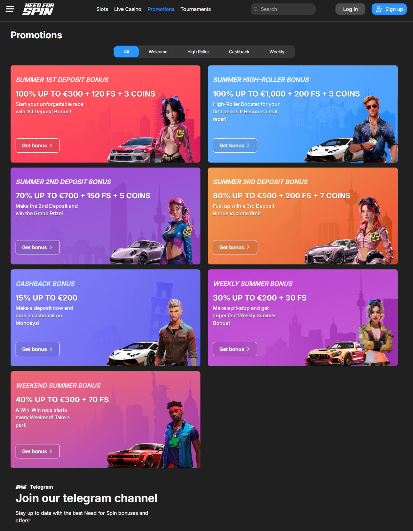 The Need For Spin Casino 2025 promotional calendar includes several recurring bonuses that keep the excitement levels high throughout the week: