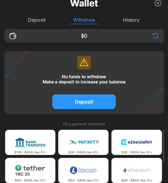 • Instant Cryptocurrency Transactions: Unlike traditional banking methods, crypto deposits and withdrawals are processed within minutes