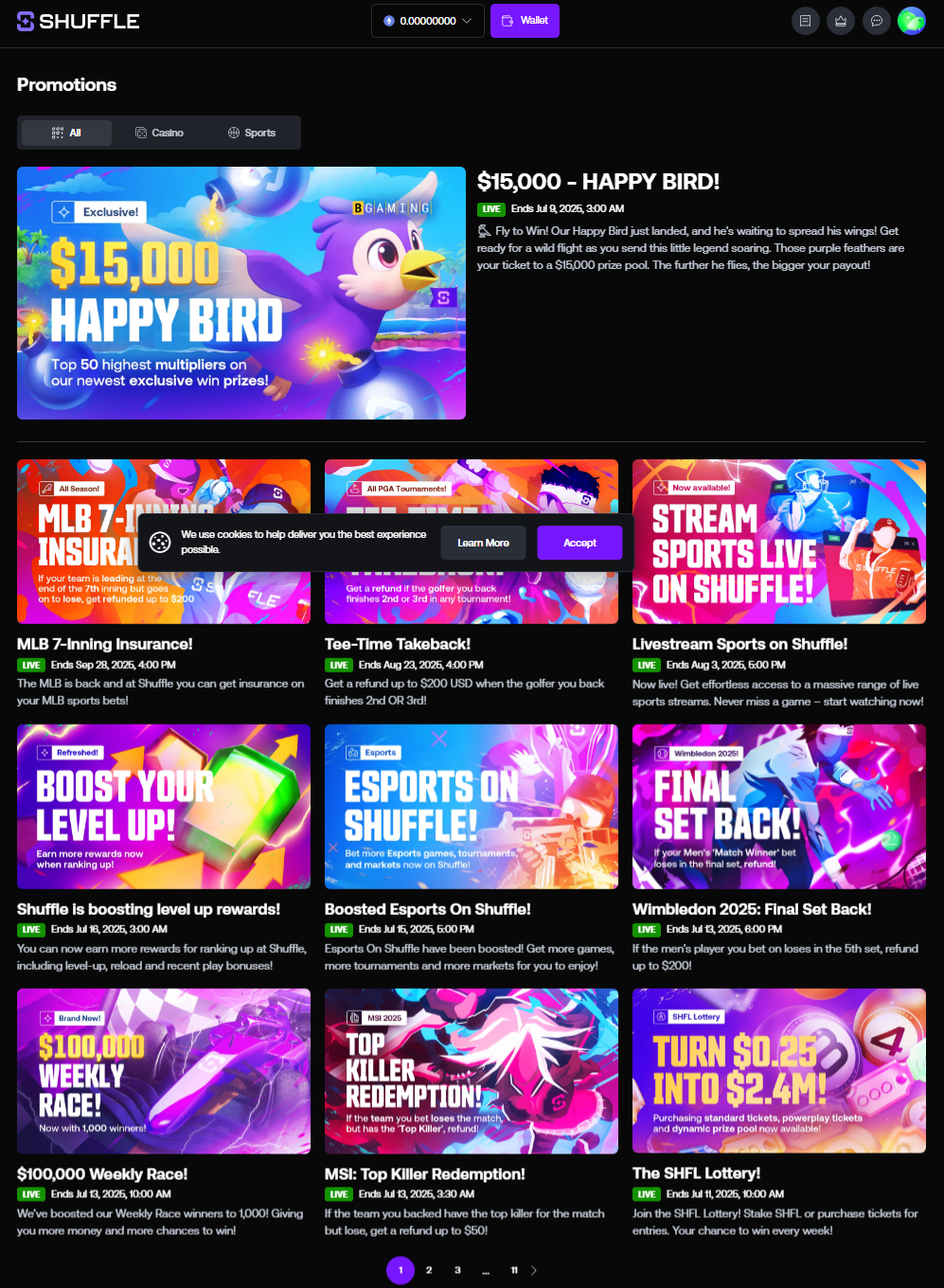 Shuffle Casino offers competitive welcome bonuses with matched deposits and free spins focused on crypto players. Additionally, it features reload bonuses and a VIP loyalty program that rewards frequent players with cryptocurrency incentives. The wagering requirements are industry standard, aiming for balance between player benefit and responsible gaming.