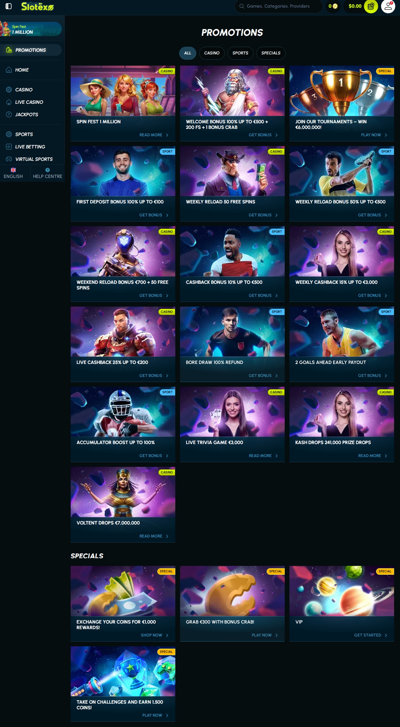 Book of Bet Casino positions itself as a high-volume gaming destination with over 7,000 games and a welcome package reaching €24,000. However, when compared to Slotexo Casino's focused approach, several key differences emerge:
