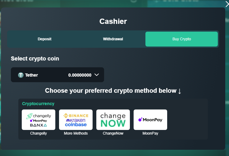 - BTC, ETH, LTC, TRX, and other crypto supported