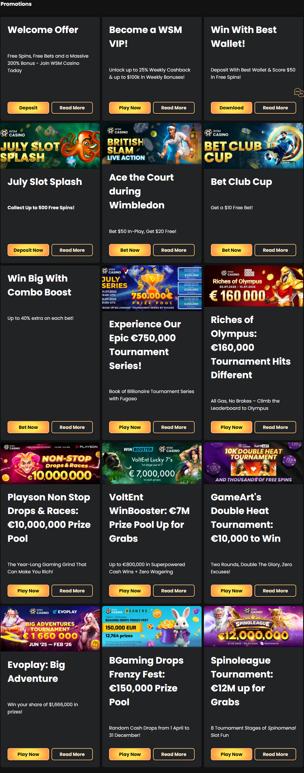 Below is an overview of the main bonuses currently offered at WSM Casino: