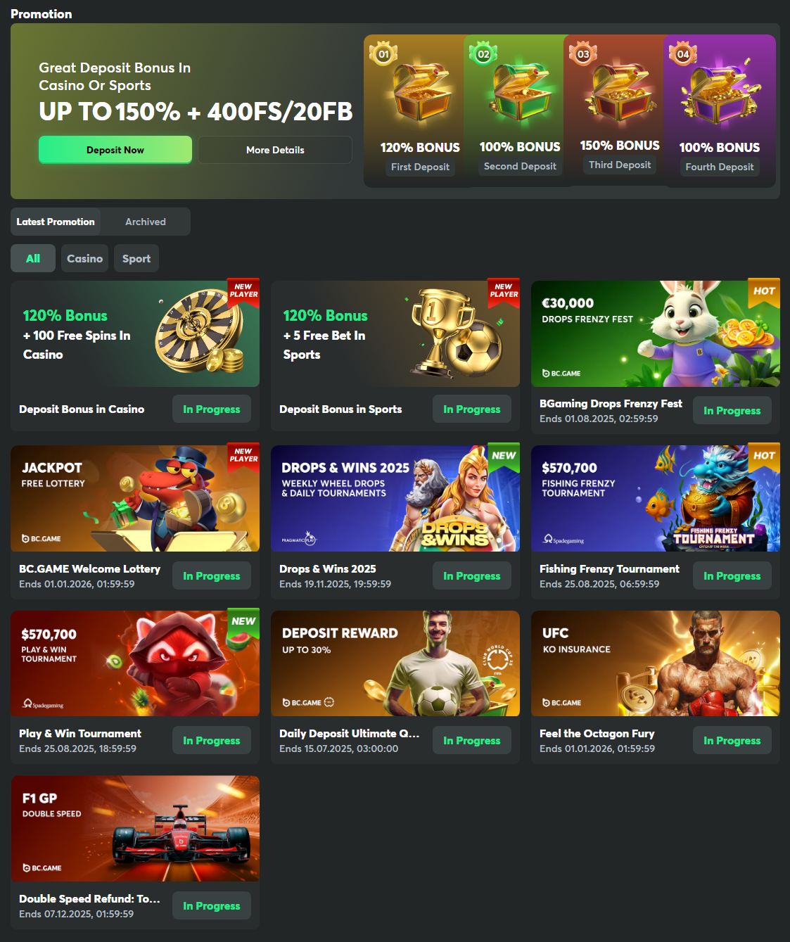 BC.Game offers an extensive portfolio of over 10,000 games, making it one of the largest crypto casino libraries available. This vast selection includes classic slots, table games, live dealer options, and unique in-house games such as Crash and Plinko. Additionally, BC.Game integrates provably fair algorithms, ensuring transparency and trust in the gameplay. The platform collaborates with over 80 providers, providing a wide range of themes and styles suitable for various player tastes.