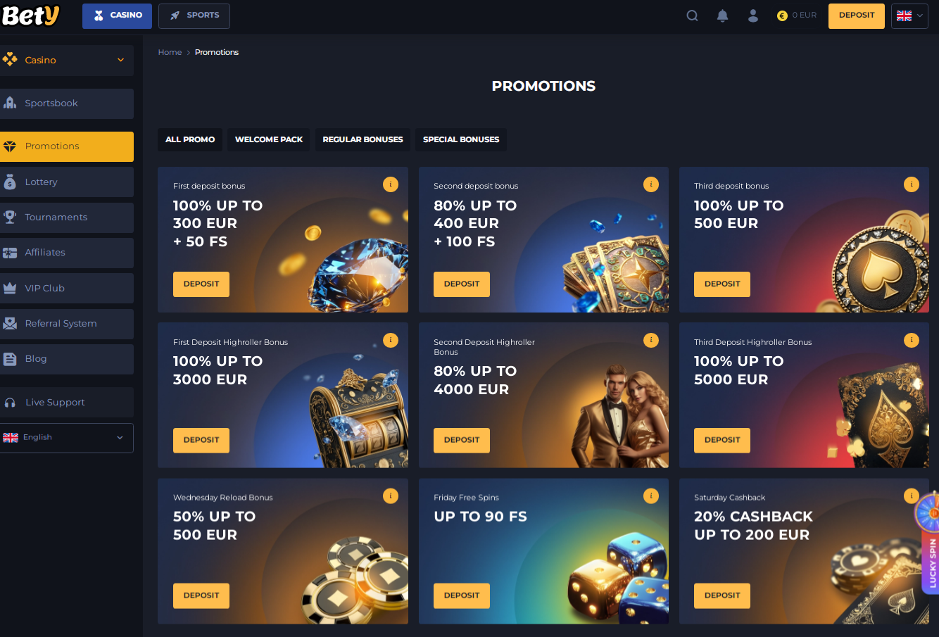 Bety Casino provides a competitive welcome bonus, often including a 100% match up to 1 BTC plus free spins. Their wagering requirements are moderate, generally around 40x. Regular reload bonuses and cashback offers are available for loyal players, focusing on rewarding crypto deposits.