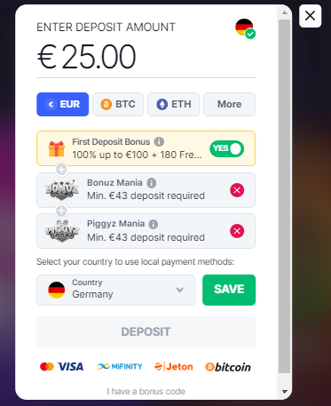 A solid payment mechanism, such as Bitcoin, can work wonders when it comes to depositing funds. BitStarz is a top Bitcoin casino that allows its customers to make deposits and withdrawals using Bitcoin (BTC). This means that Bitcoin players will need to make a deposit, choosing from a limited set of payment methods.