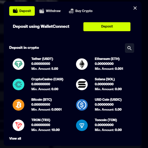 As an umbrella brand showcasing multiple operators, Crypto Casinos provides access to a vast catalogue of over 6,000 games. Players can enjoy everything from classic slots to live dealer tables and blockchain-based games. The exact number and variety vary by partner site, but the range typically includes providers like NetEnt, Evolution, and BGaming.