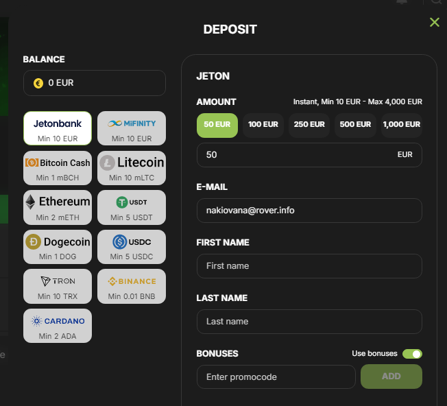 A: The minimum deposit varies by payment method, but generally starts at €20 (approximately A$32) for most cryptocurrencies and traditional payment methods.