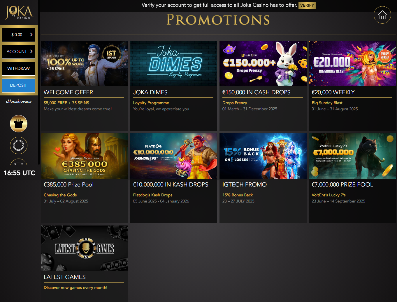 Account verification at JokaRoom Casino involves standard KYC procedure, including identity verification, address confirmation, and payment method verification. The process is streamlined for cryptocurrency users while maintaining security and compliance standards.