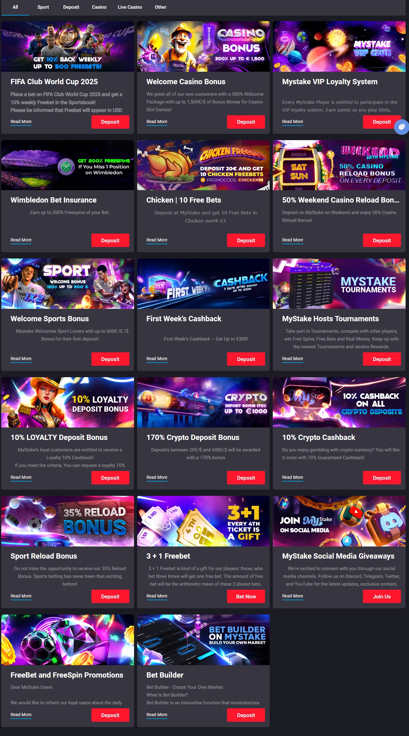 MyStake offers a professional, feature-rich interface that supports deep navigation across thousands of games and promotional offers. Despite its size, the layout is intuitive, and players can easily switch between sportsbook, live casino, and virtual sports. The site is mobile-optimised and supports multiple languages and currencies.