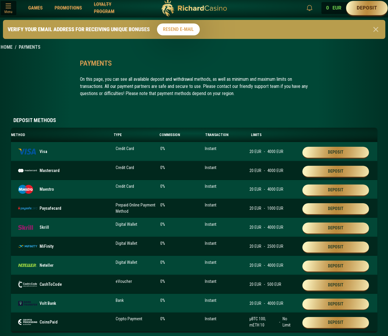 Richard Casino Deposit Options