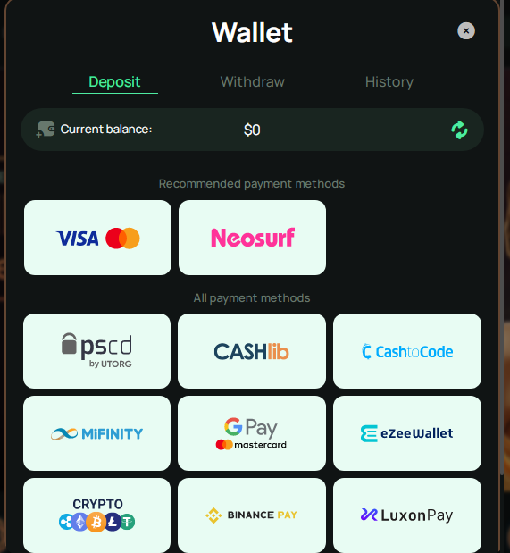 The platform offers a carefully curated selection of conventional payment methods designed to meet the needs of traditional players: