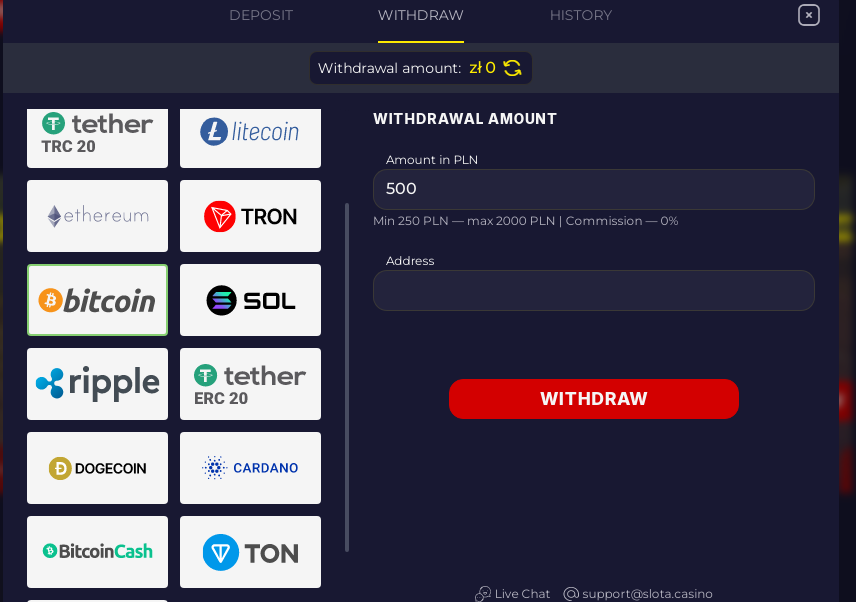 The withdrawal system at SlotaCasino showcases the platform's commitment to providing comprehensive cryptocurrency support for Australian players. The extensive range of supported digital currencies reflects the platform's understanding of the diverse preferences within the crypto gambling community.