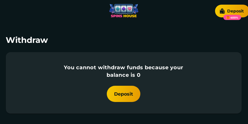Withdrawals require a positive account balance, as indicated by the platform's clear messaging system. Players must meet standard wagering requirements and verification procedures before processing withdrawal requests through their preferred payment method.