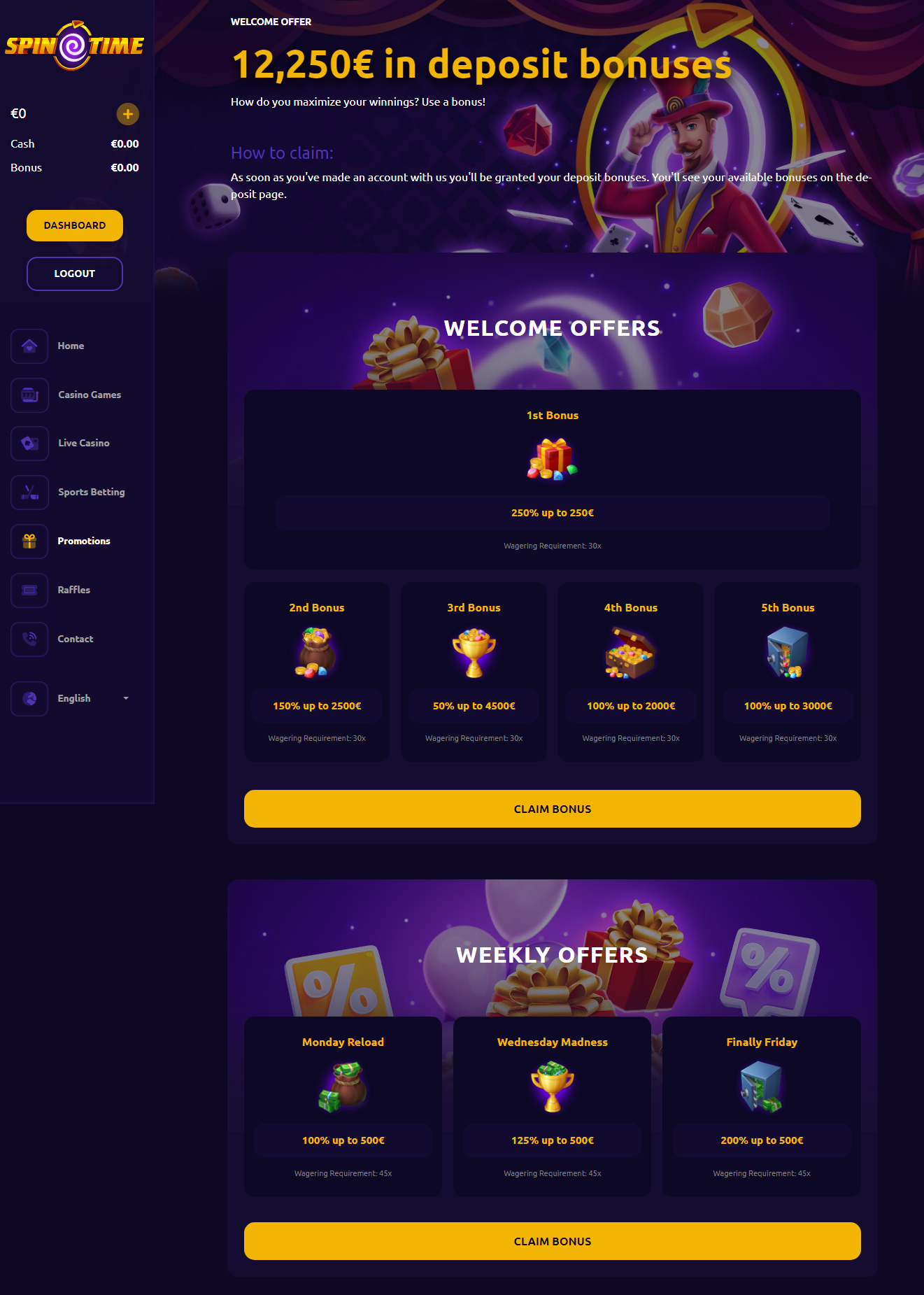 SpinTime emphasises no-KYC withdrawals for crypto, cold wallet storage, and multi-layer SSL encryption. These features appeal to privacy-focused players.