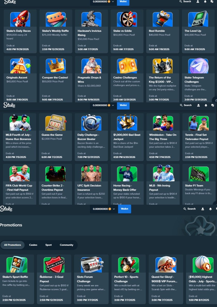 Stake offers over 3,500 games from top developers, including Pragmatic Play, Hacksaw Gaming, and Evolution. The platform includes slots, table games, live dealer games, and exclusive in-house titles like crash games and provably fair dice. The seamless integration of sportsbook and casino sections provides additional entertainment for users interested in sports betting.