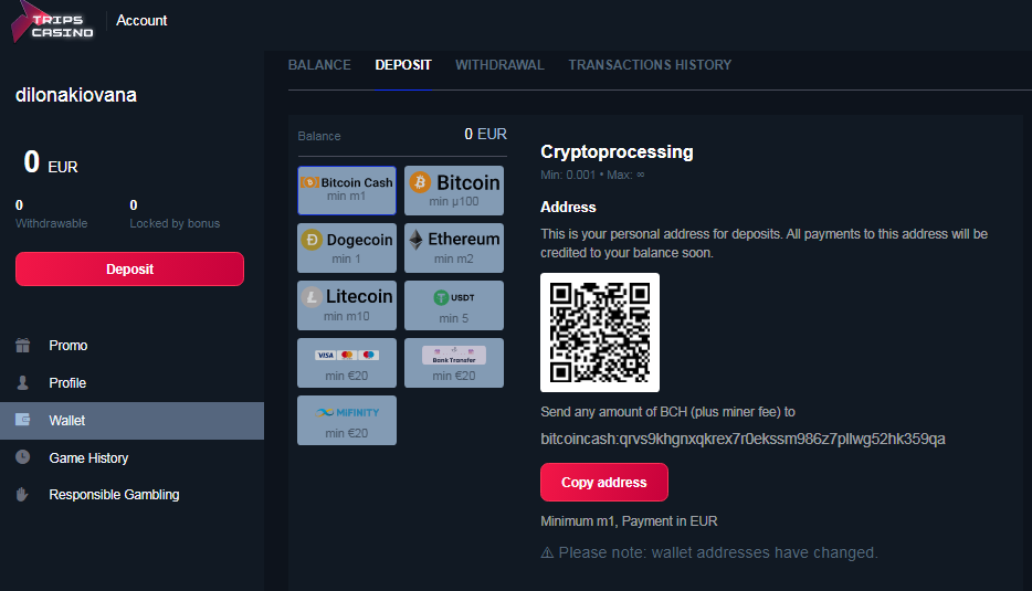 The platform demonstrates a strong commitment to player safety through various security measures and responsible gaming tools. The regular updating of cryptocurrency wallet addresses and clear warnings about irreversible transactions show attention to security details.