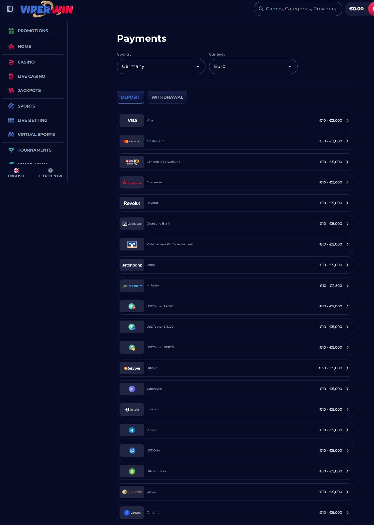 ViperWins fully embraces cryptocurrency payments, supporting major digital currencies including Bitcoin, Ethereum, Dogecoin, and Litecoin. All bonus offers are available regardless of the payment method used, making cryptocurrency deposits equally rewarding as traditional payment methods.